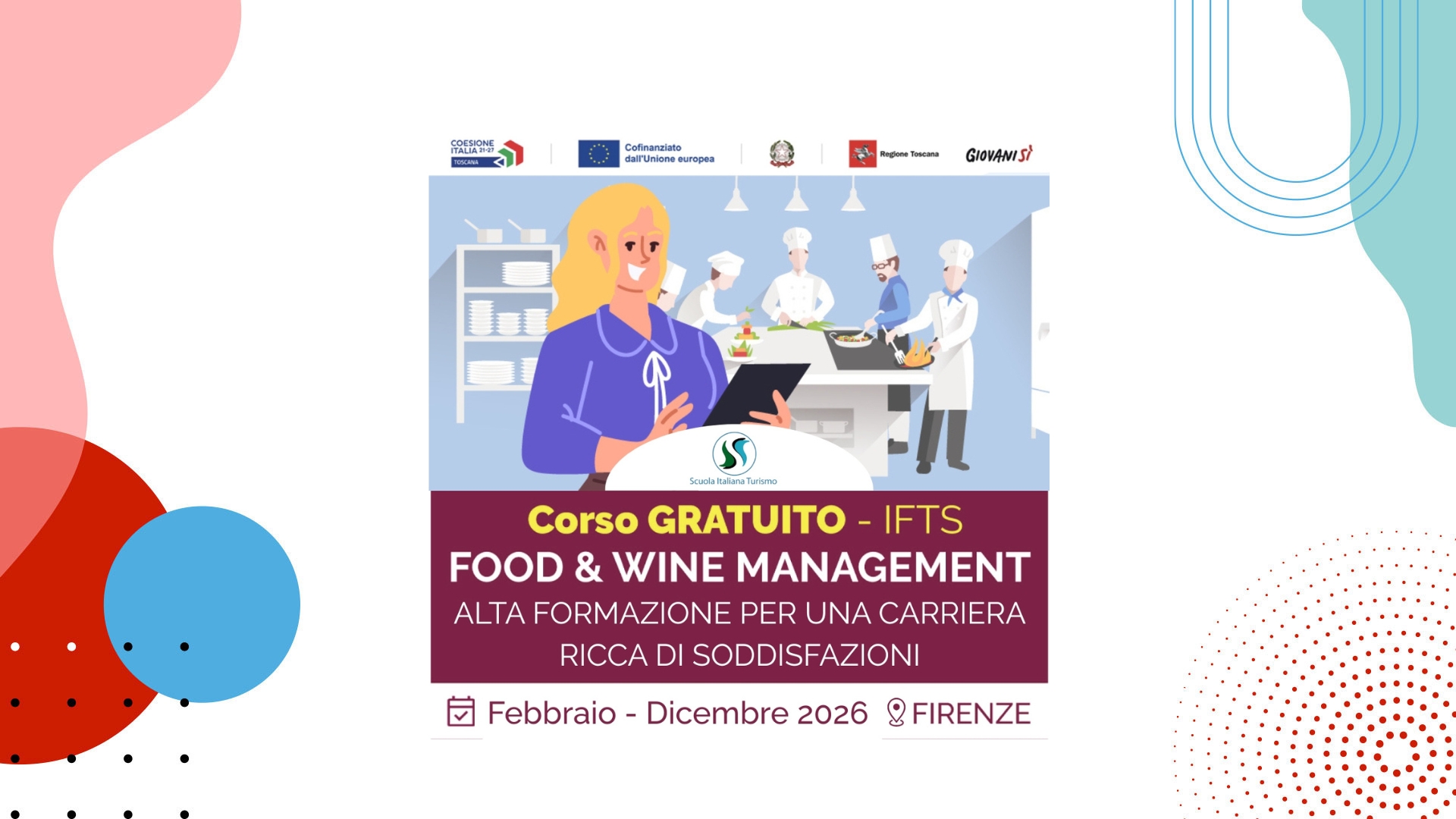L’agenzia formativa SCUOLA ITALIANA TURISMO SRL (OF0089) capofila di ATS, in attuazione del Decreto Dirigenziale n. 17403 del 29 luglio 2025, informa che sarà attivato il seguente corso di Istruzione e Formazione Tecnica Superiore (IFTS), Codice progetto 321379